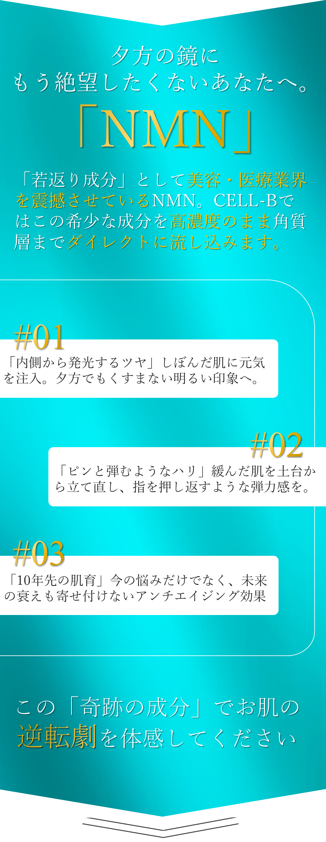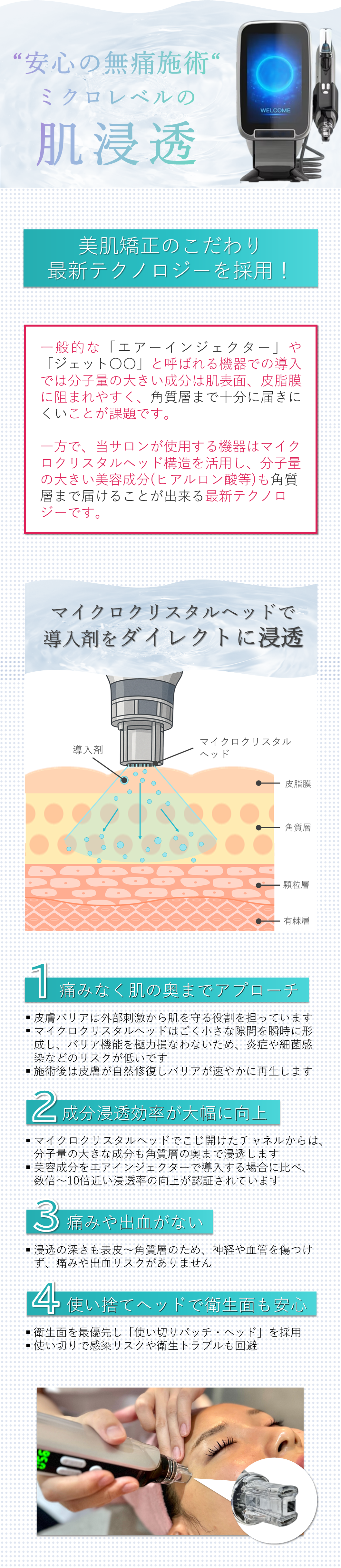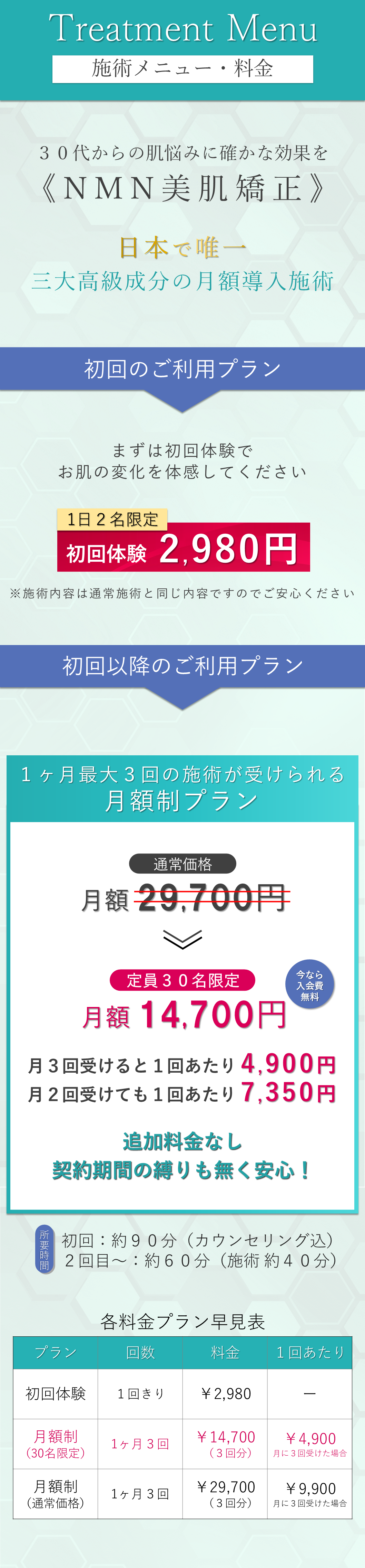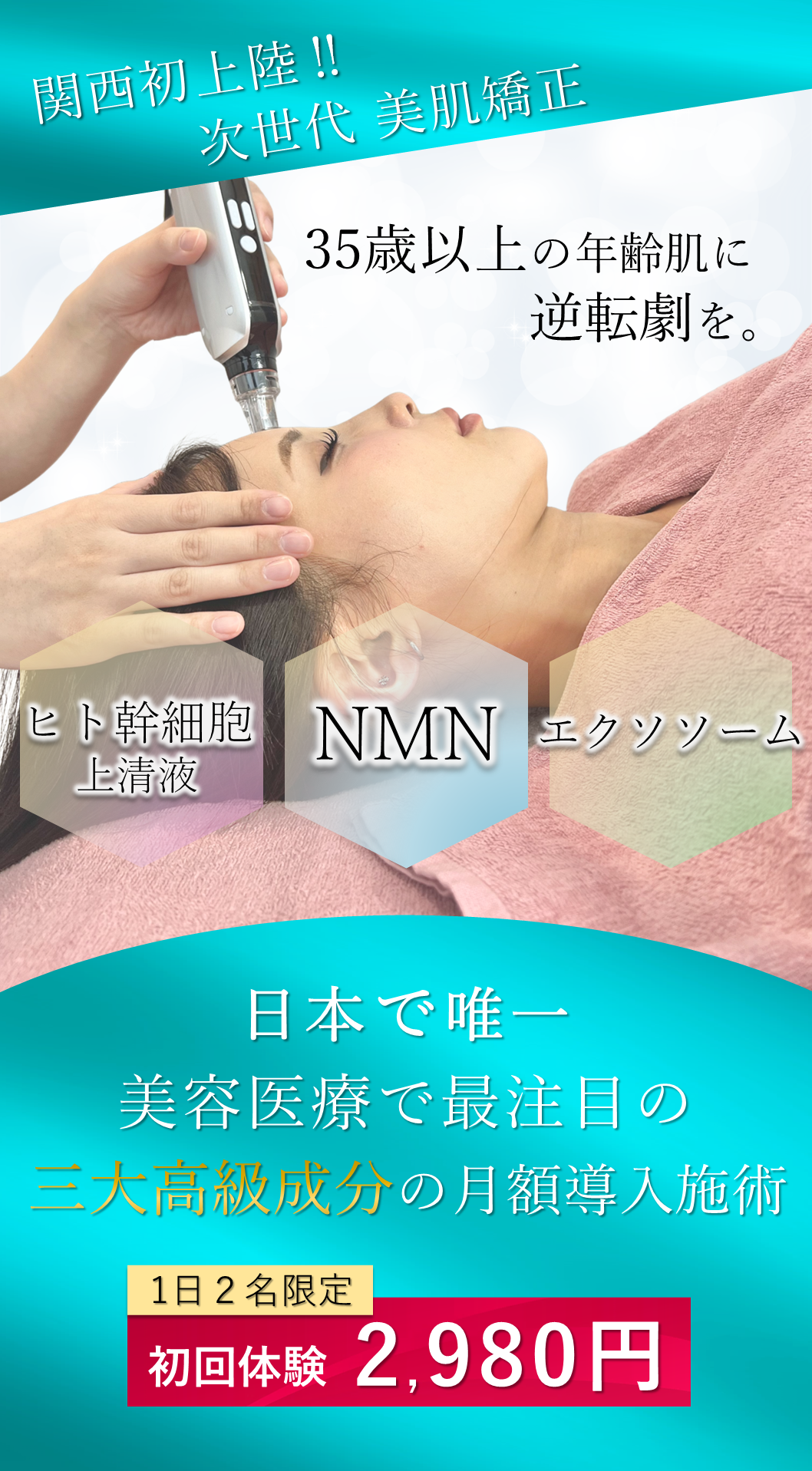 A. 一般的なNMN、ヒト幹細胞培養液、エクソソームに比べて高濃度な導入剤となりますので、アトピー肌やお肌がかなり弱いお客様には施術を控えていただいております。